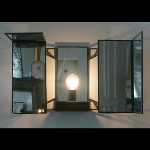 This mural lamp bridges the gap between 30s Art Deco influences and contemporary design. Made out of laser-cut metal (treated using an acid-based process) and see-through mirrors, the glass box at its core opens up as if it were spreading its mirror-wings.