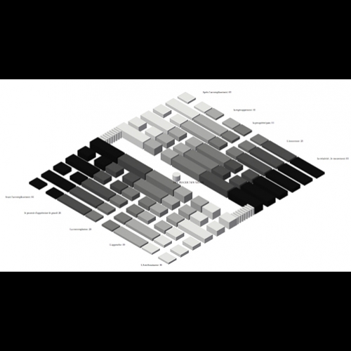 Once at the top of the mountain, visitors discover an accumulation of mirrored panels positioned in the shape of a labyrinth. With four cardinal entries, the installation stages bi-coloured mirrors that create a symbolic progression towards light : finding their way amidst panels recreating the constitutive elements of the I Ching, all happens as though visitors were deciphering symbols of the Korean culture. Step y step, each visitor (re)discovers his own image while he paces through the labyrinth towards its centre, where he reaches a vertical beam of light. Directed towards the sky, the beam can be seen from the heart of the city. A symbolic installation.
