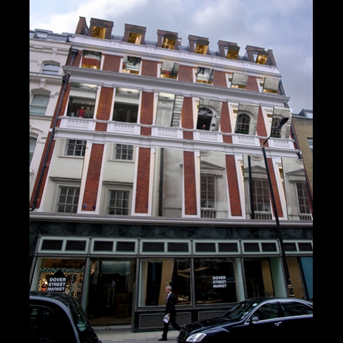 Idéalement situé au cœur de Mayfair, Dover Street Market est installé dans un immeuble de cinq étages de style classique : magasin pointu, il accueille le meilleur du design, de la mode et de la création contemporaine. Baigné de lumière londonienne, il se colore au fil de la journée dans une palette de teintes bleues et grises, à l’image des nuages qui évoluent dans le ciel.