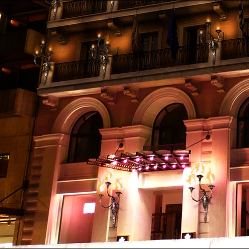 Set in the heart of Athens, in the vicinity of Hotel d’Angleterre and the House of Parliament, King George II Hotel enjoys a perfect location. Considered a historical landmark, it deserved an elegant lifting to restore its uniqueness. I therefore opted for a specific lighting inspired from the classic English and French houses of the 18th century in which bronze wall lamps (or candelabra) were hung to create a tasteful candlelight halo. Searching into the Louvre’s archives, I found a pair of 18th century bronze lamps : in the shape of woman body, the subtleness of the curves in a “à la Grecque” style made it the perfect match. Once modernized and reproduced in aluminium with bespoke bulbs, I would line them up vertically on the façade, to give the building a true presence, and the facade a real character.