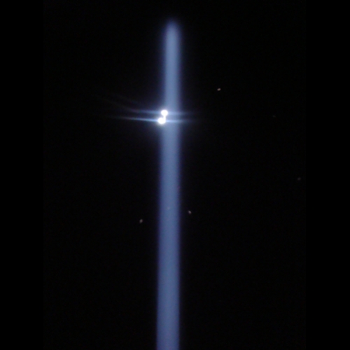Sometimes, at random, the magical encounter of both of them (beam and iridescent coated balloon), would cast light in the air, as a newborn star.