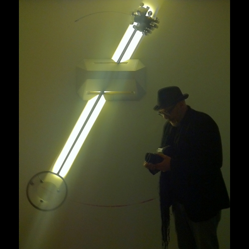 l’objet lumineux réalise un mouvement de balancier continu et trace un trait courbe sur le mur.