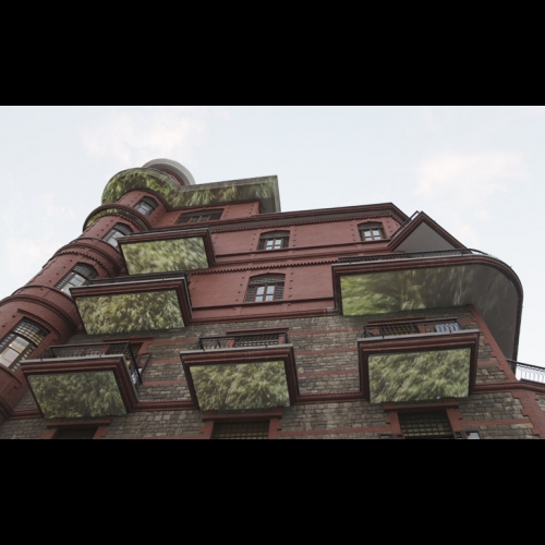 Quand le soleil baissera et que la lumière sera plus tamisée et plus douce, les dessous des balcons apparaîtront comme transparents grâce aux reflets en image de la mémoire de l’édifice avec les films projetés de différentes sensations et vues poétiques : ciels, nuages, eau, ou encore le soleil à travers des arbres, des pas sur le sable,… Ces images détourneront l’édifice de son esthétique originale afin de révéler ses rêves et d’offrir la personnalité d’un lieu historique pendant son sommeil.