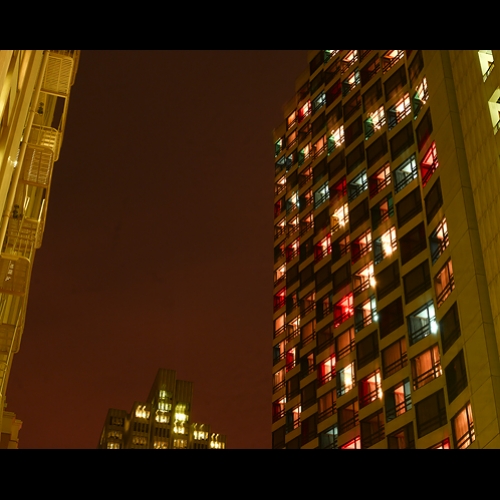 At night, as one opened or closed the curtains, turned off or on the lights, the façade came to life with a luminous set of colourful movements. »