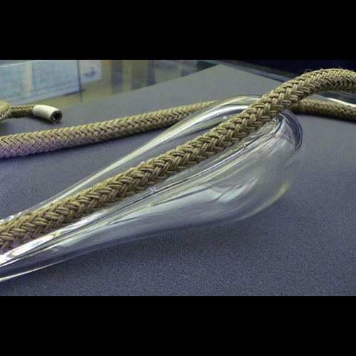 Limited edition suspension commissioned by a Scottsdale collector and entrepreneur, this dramatic outdoor chandelier was created as a fluid and masculine interpretation of classical chandeliers. Considering light as a fluid vibration, it is built without any solid structure, thus revealing its secrets when reflected into a mirror or glossy painted floor. Looking like an elegant puzzle of entangled ropes (made out of woven hemp) that float and bounce back with the movement of the wind, the eyes always question its shape. Moreover, by adding crystals to the piece (as the core luminous elements), the warm texture of traditional candlelight and fire is transformed into a clean and vibrating constellation of lights.